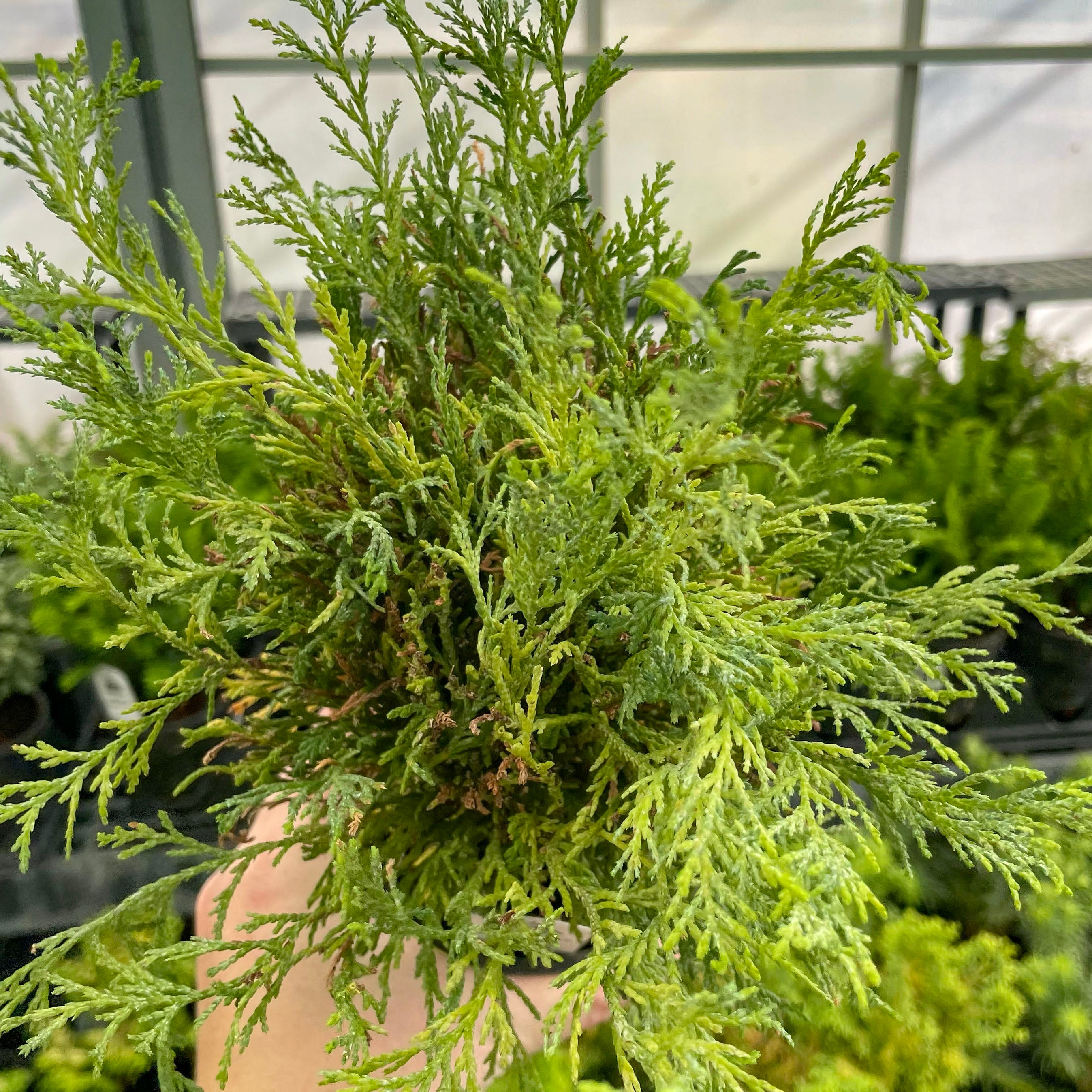 ‘Angel Hair’ Threadbranch Cypress is a delicately textured conifer featuring exceptionally fine, thread-like foliage that creates a soft, airy presence in the garden. With thinner and more refined growth than ‘Filifera,’ this slow-growing variety adds an elegant, almost wispy quality to landscapes, making it a perfect choice for adding texture and movement.