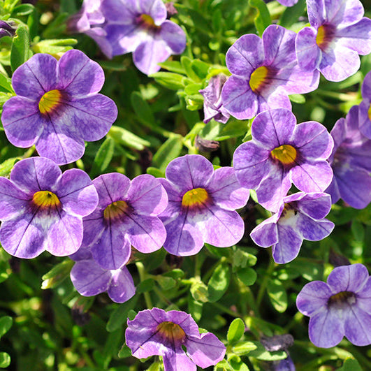 Calibrachoa ‘Caliloco Skywalker’ brings dreamy shades of blue, blue-violet, and purple to containers and hanging baskets from early spring through fall. This compact, trailing bloomer thrives in sun to part sun and pumps out color all season.