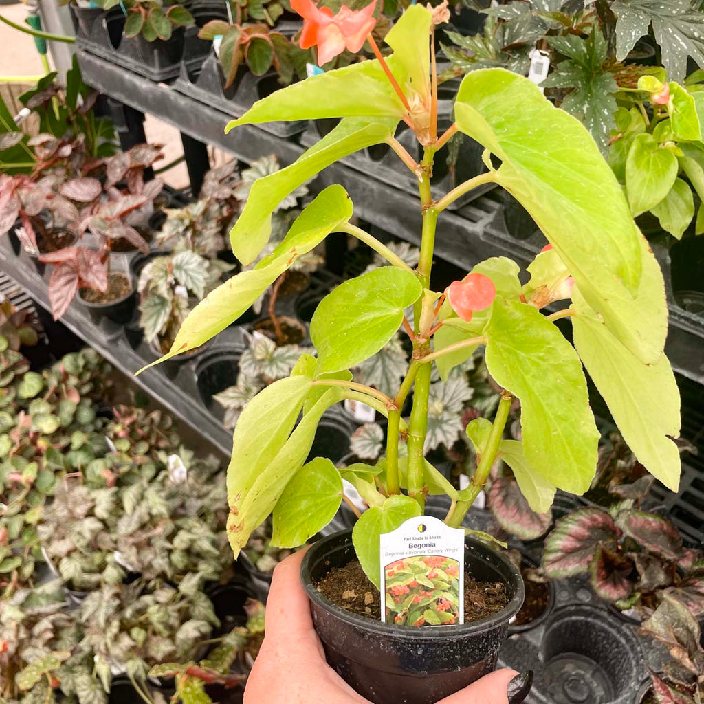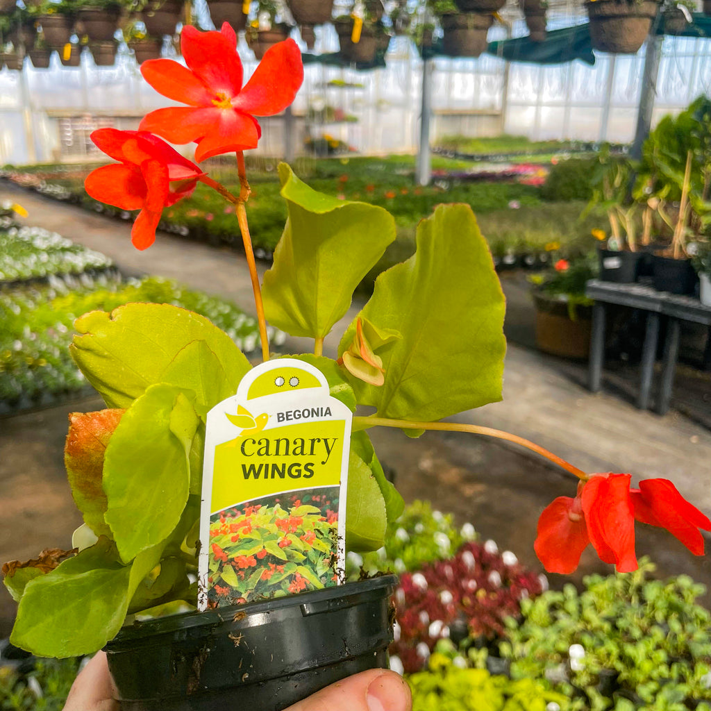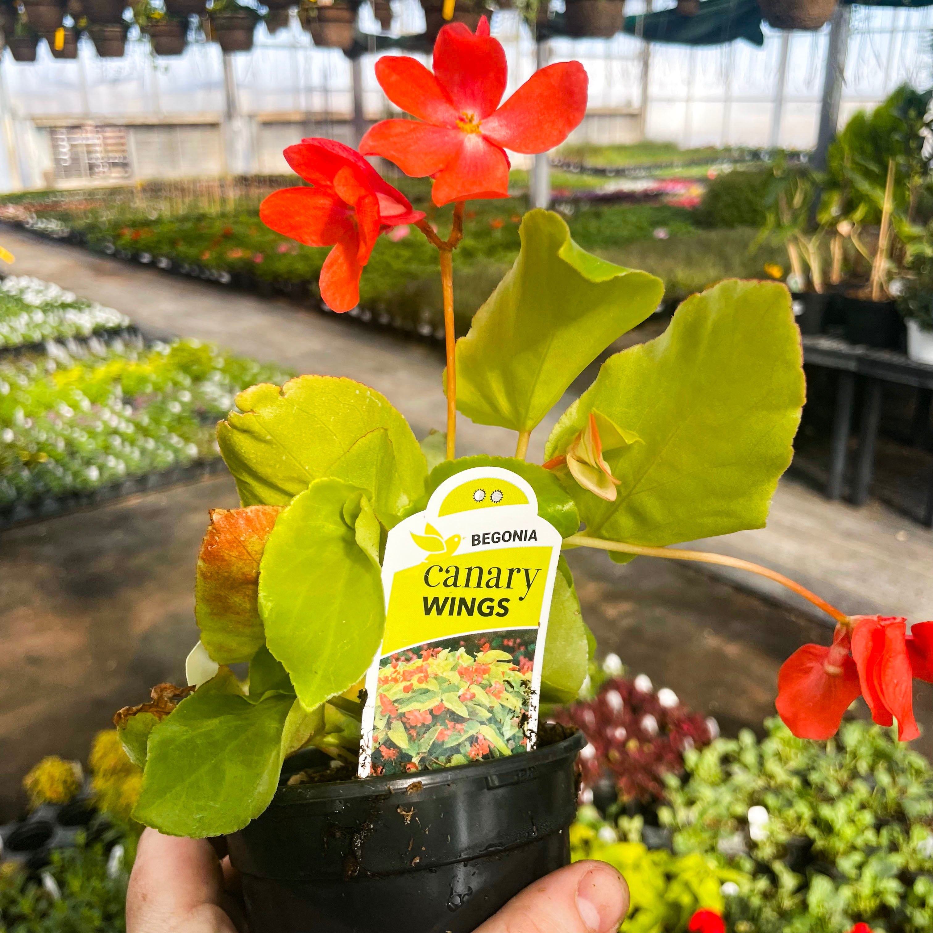 Begonia 'Canary Wing' is a vibrant, eye-catching houseplant that adds a splash of color to any space. Its striking chartreuse leaves are paired with bright red blooms, creating a bold contrast that instantly livens up your indoor garden. With its trailing habit, this begonia is perfect for hanging baskets, where its lush foliage and flowers can spill gracefully over the edges.