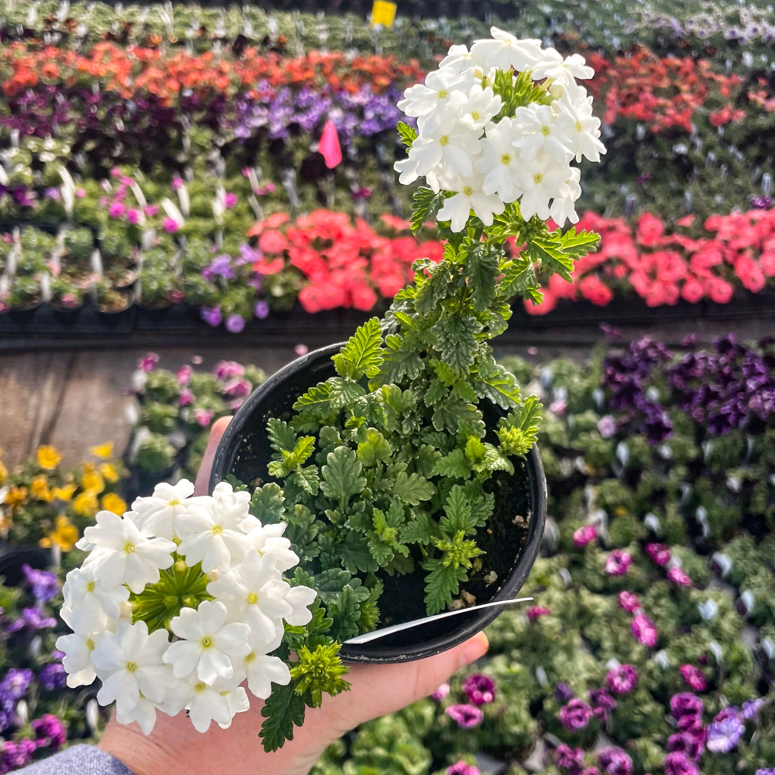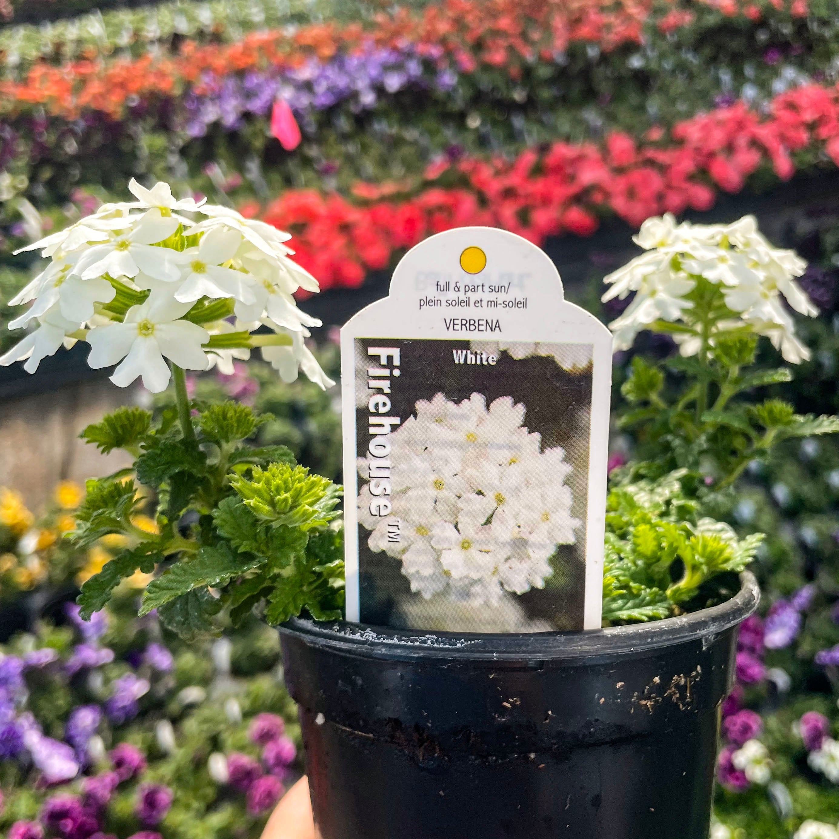 Verbena peruviana 'Firehouse™ White' delivers clean, bright white blooms that last all season without fading or cycling out of color. With a strong trailing habit, it’s perfect for hanging baskets, mixed containers, and garden beds. This variety stands up to summer heat and humidity with ease and offers excellent resistance to powdery mildew, keeping foliage fresh and healthy. A top performer for long-lasting, low-maintenance color in sunny spaces, Firehouse™ White is a go-to for classic garden appeal.