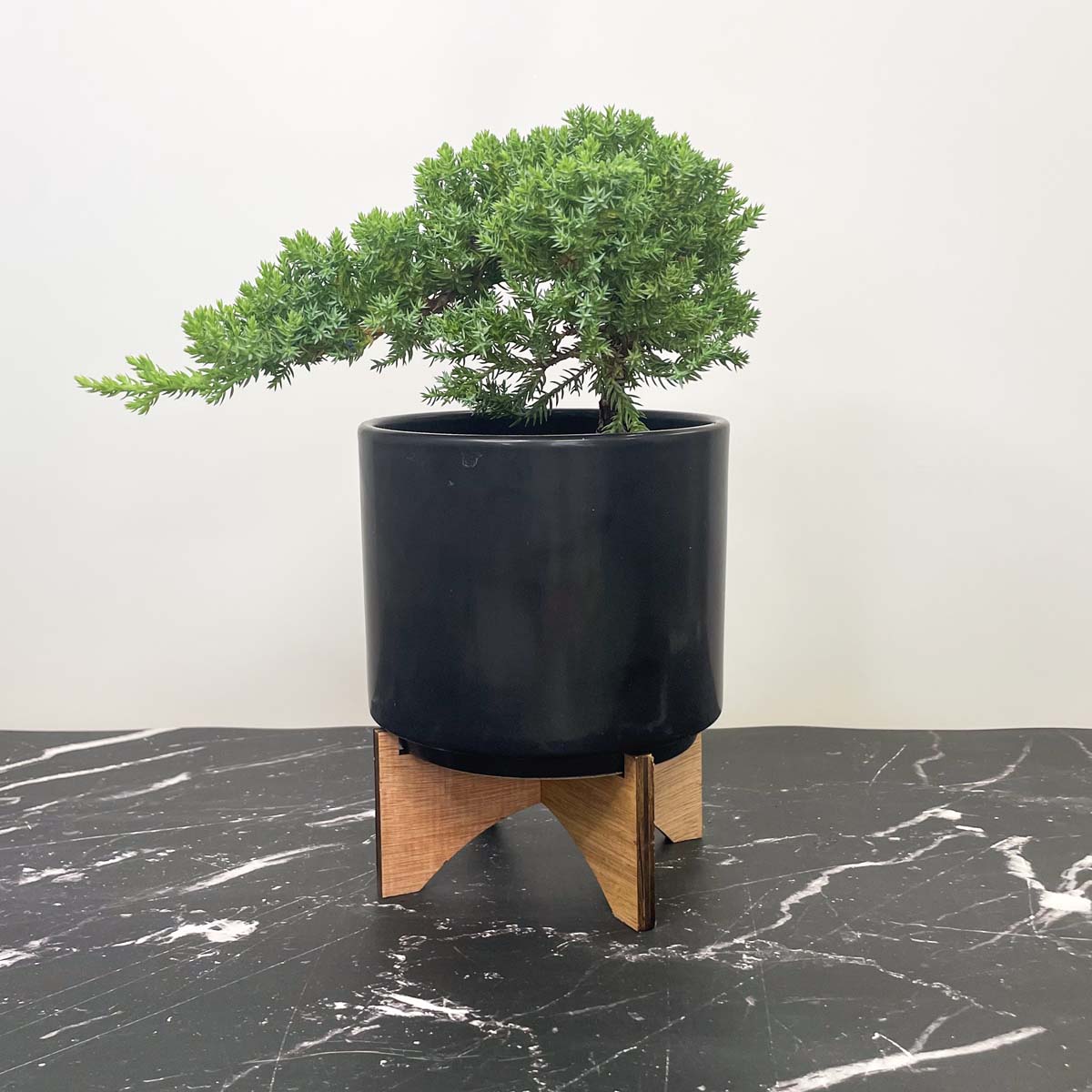 Originally introduced in Japan in 1922, this low-growing juniper is prized for its tight, primarily juvenile bluish-green foliage and slow, measured growth. We grow Juniperus procumbens ‘Nana’ grafted onto a standard, allowing masses of dense foliage to drape down and out, forming a dramatic upright accent with a minimal footprint. Left to grow naturally, this versatile plant spreads prostrate, spilling gracefully over containers, rocks, or low walls. Its adaptive nature makes it popular for bonsai, where it’s frequently used thanks to its compact form and ease of shaping.