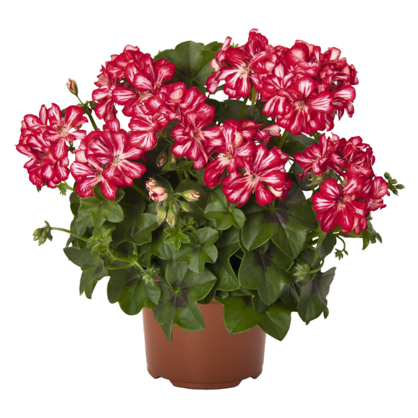 Great Balls of Fire® ‘Stars & Stripes’ is a standout ivy geranium from Dümmen with a medium-vigorous, trailing habit and bold personality. Large clusters of deep red and white double blooms cascade in a nonstop waterfall of color—even through intense heat and humidity.