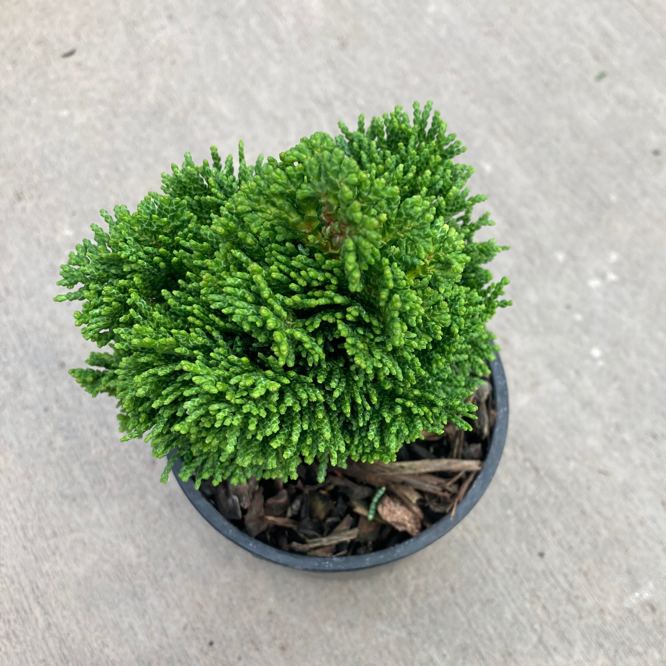 ‘Thoweil’ is a slow-growing Hinoki cypress with deep green foliage that naturally assumes a narrow, upright form. Over time, its sculpted appearance makes it an ideal feature specimen, perfect for viewing from all angles in the garden. Its refined silhouette and compact size also suit container planting, where it can serve as a stately focal point on patios or decks.
